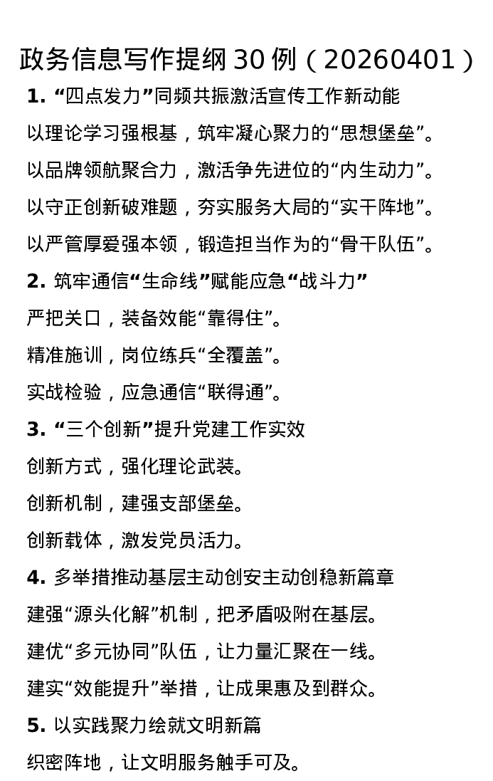 政务信息写作提纲30例(20260401)