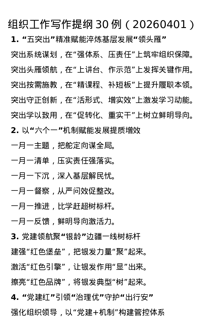 组织工作写作提纲30例(20260401)