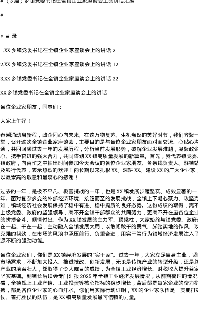 汇编:乡镇党委书记在全镇企业家座谈会上的讲话3篇