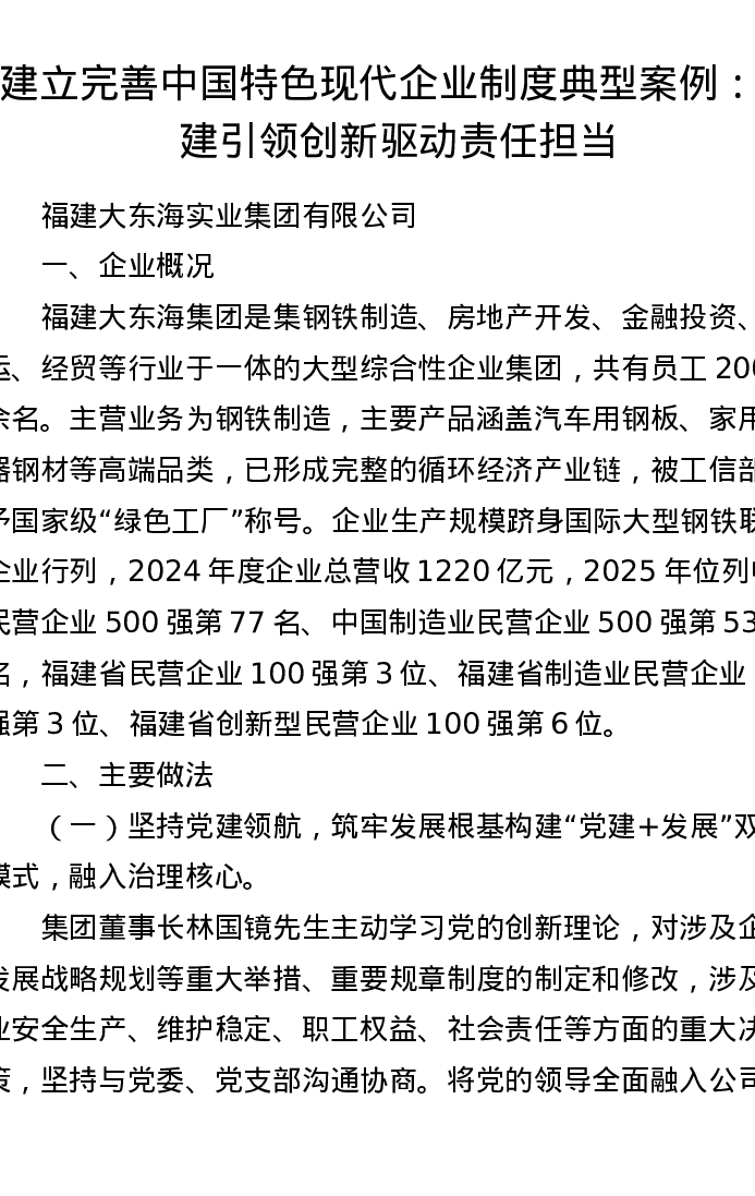 建立完善中国特色现代企业制度典型案例:党建引领 创新驱动 责任担当