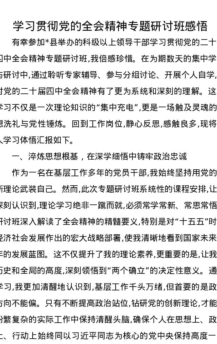 学习贯彻党的全会精神专题研讨班感悟