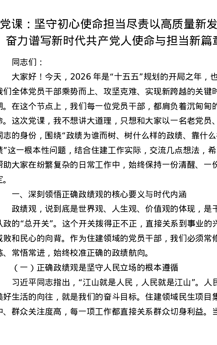党课:坚守初心使命 担当尽责 以高质量新发展奋力谱写新时代共产党人使命与担当新篇章