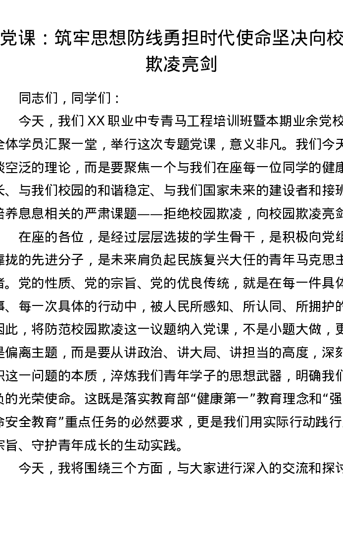 党课:筑牢思想防线 勇担时代使命 坚决向校园欺凌亮剑