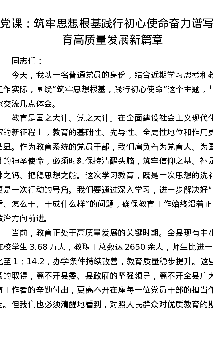 党课:筑牢思想根基 践行初心使命 奋力谱写教育高质量发展新篇章