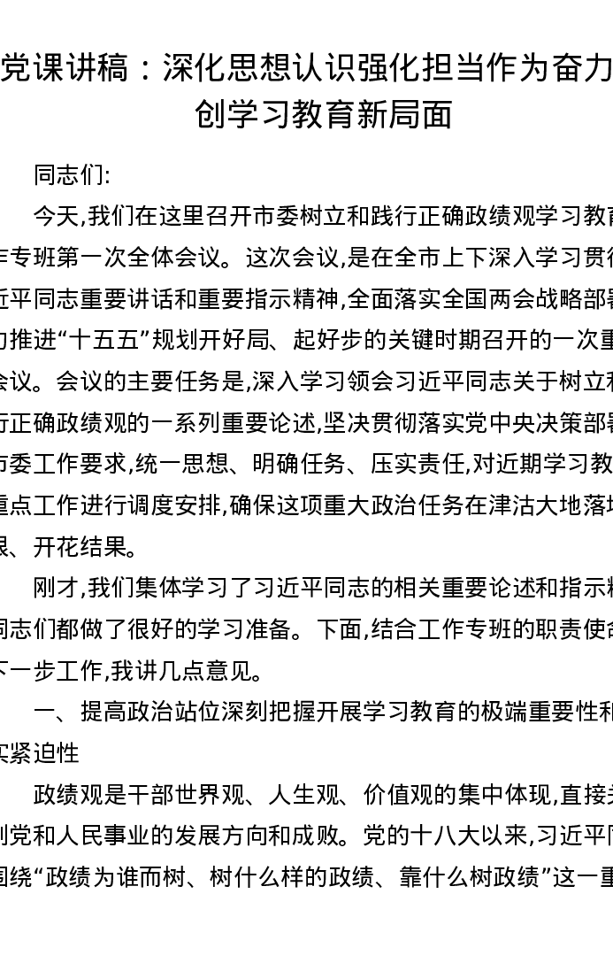 党课讲稿:深化思想认识 强化担当作为 奋力开创学习教育新局面