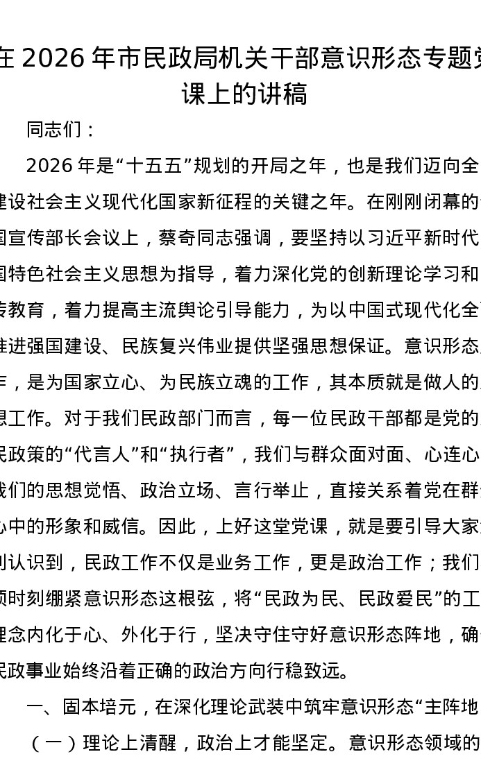在2026年市民政局机关干部意识形态专题党课上的讲稿