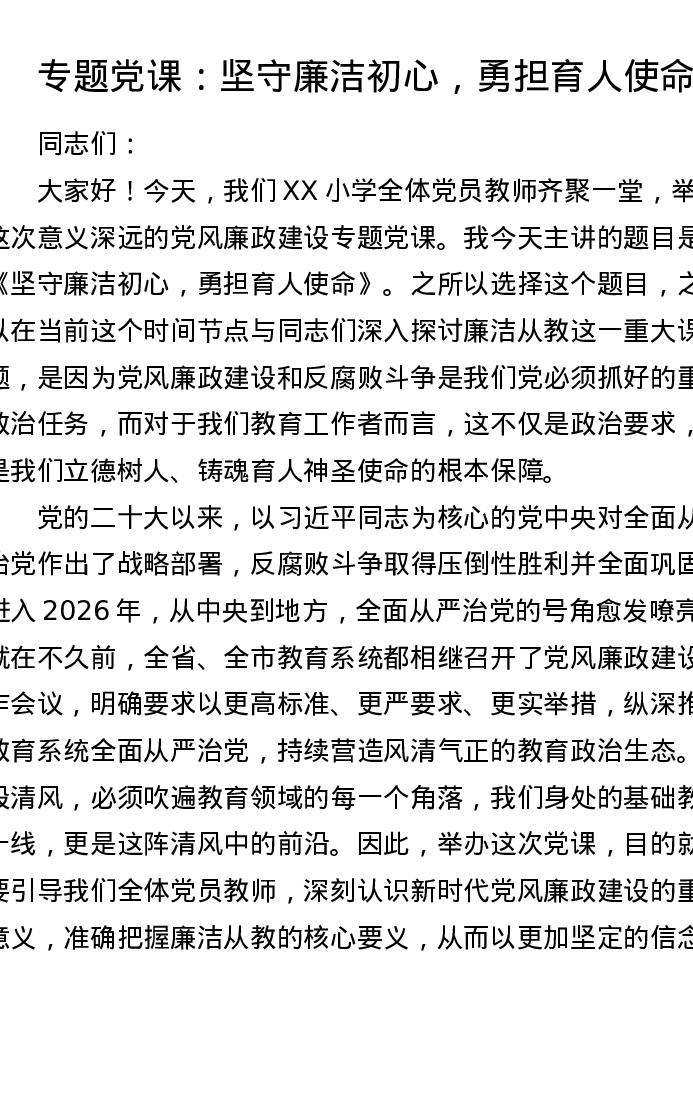 专题党课:坚守廉洁初心,勇担育人使命