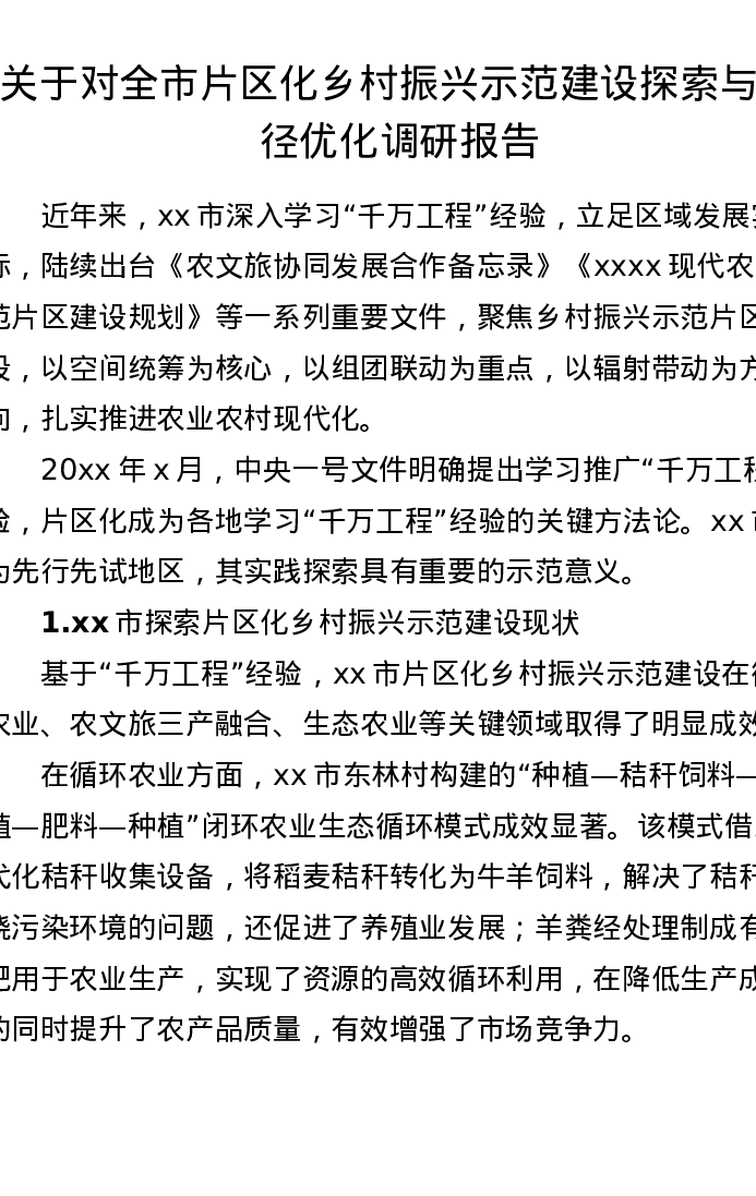 于对全市片区化乡村振兴示范建设探索与路径优化调研报告