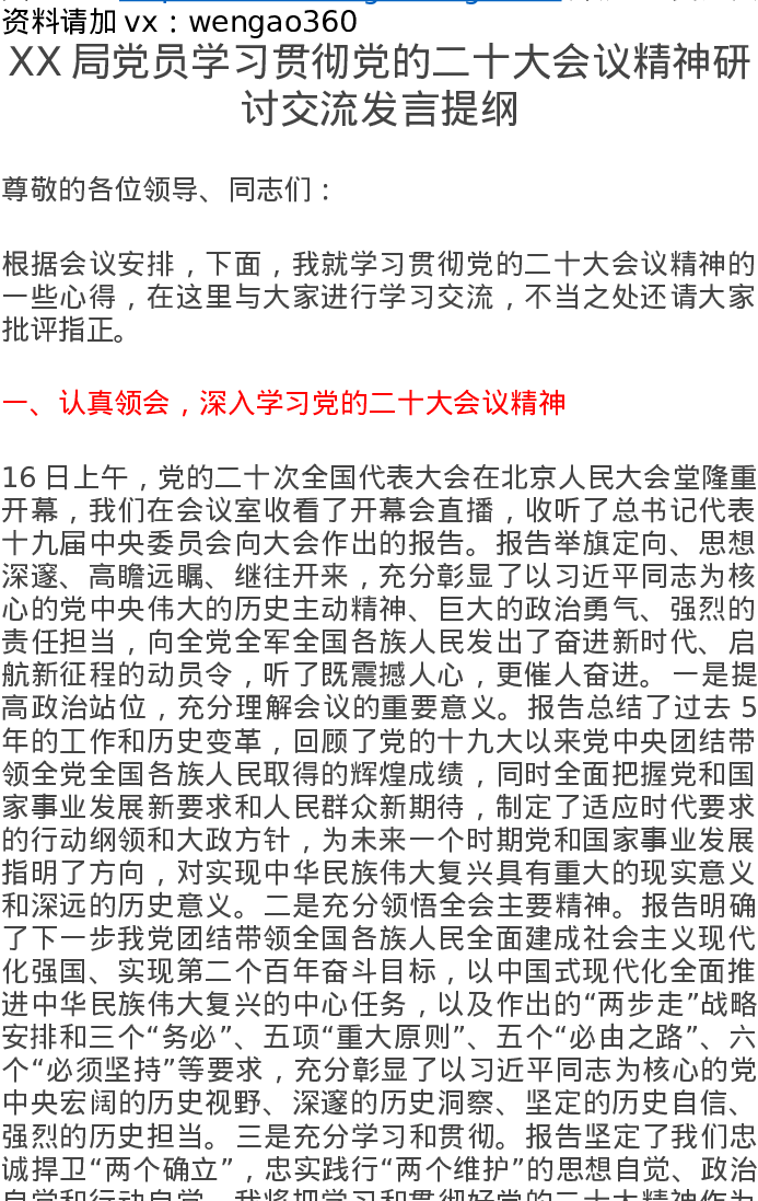 XX局党员学习贯彻党的二十大会议精神研讨交流发言提纲