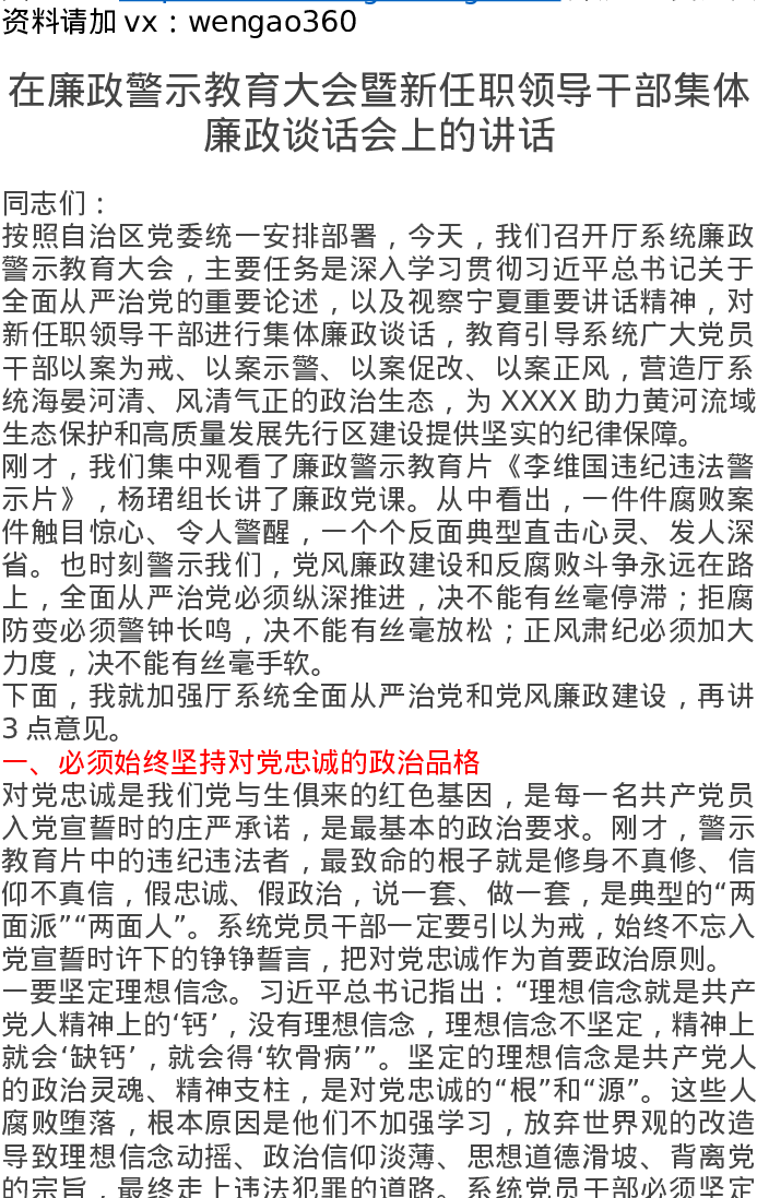 在廉政警示教育大会暨新任职领导干部集体廉政谈话会上的讲话