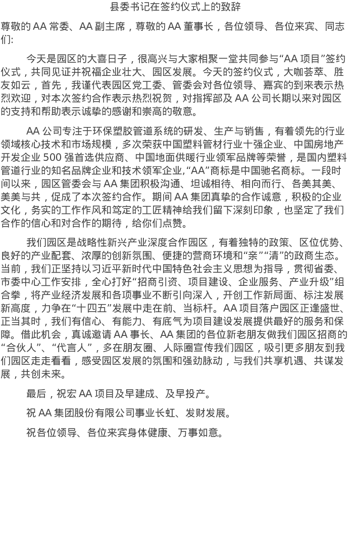 20220110县委书记在签约仪式上的致辞
