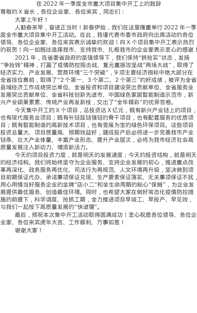 20220206在2022年一季度全市重大项目集中开工上的致辞