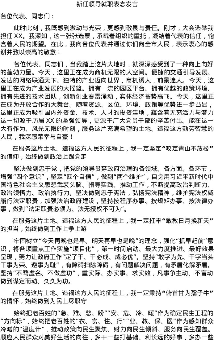 20220207新任领导就职表态发言