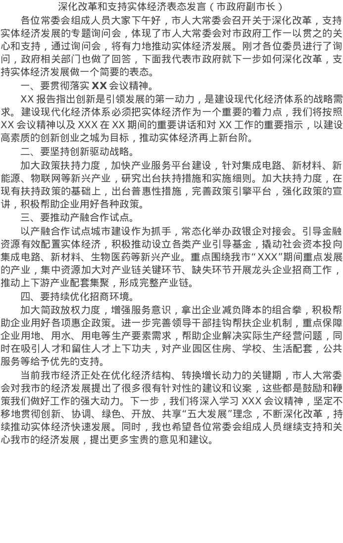 20220329深化改革和支持实体经济表态发言(市政府副市长)