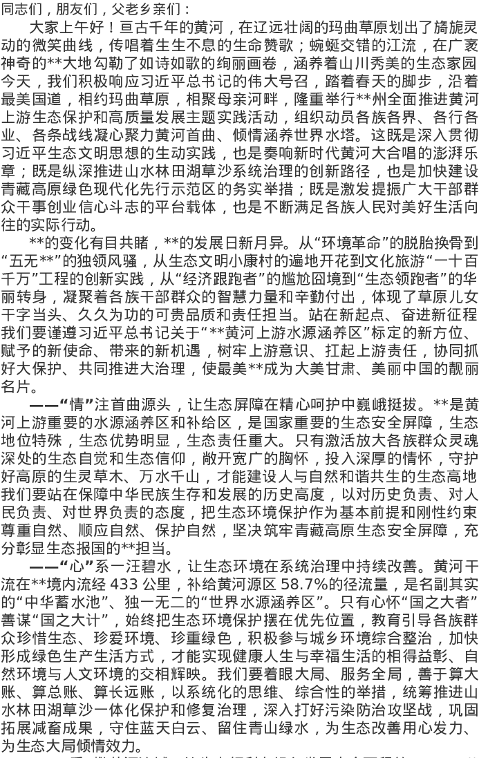 20220505在全面推进黄河上游生态保护和高质量发展主题实践活动上的致辞