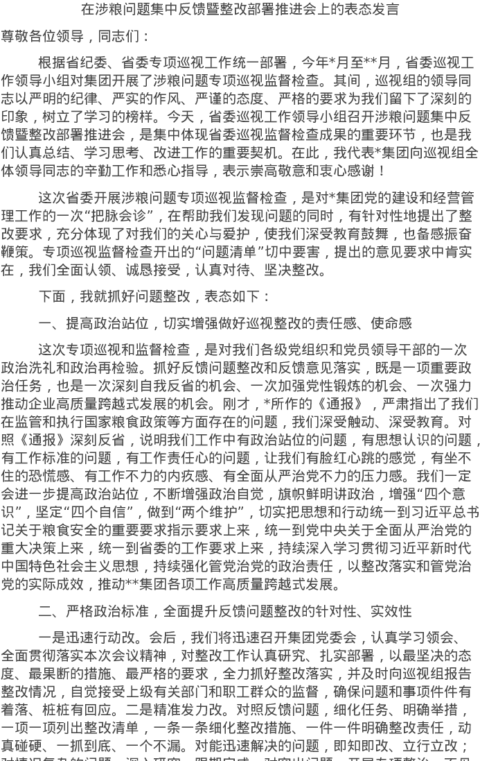 20220519在涉粮问题集中反馈暨整改部署推进会上的表态发言
