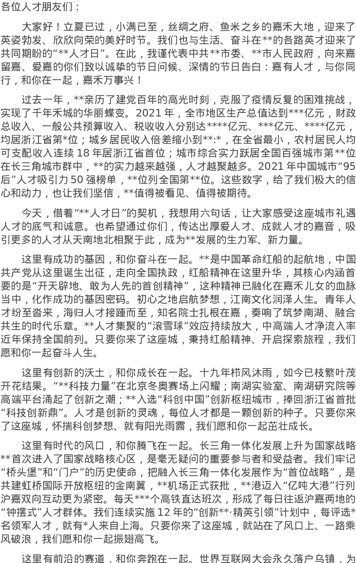 20220521在2022“全市人才日”活动开幕式上的致辞