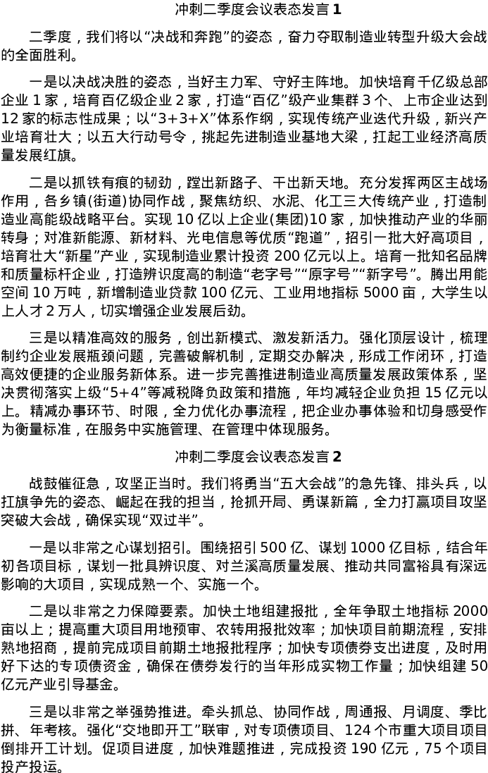 20220529冲刺二季度会议表态发言6篇