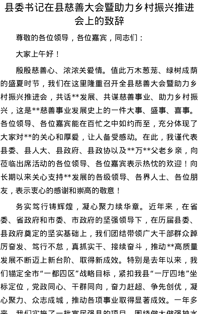 20220817县委书记在县慈善大会暨助力乡村振兴推进会上的致辞