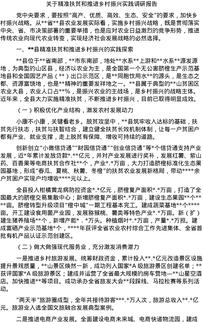20220303关于精准扶贫和推进乡村振兴实践调研报告