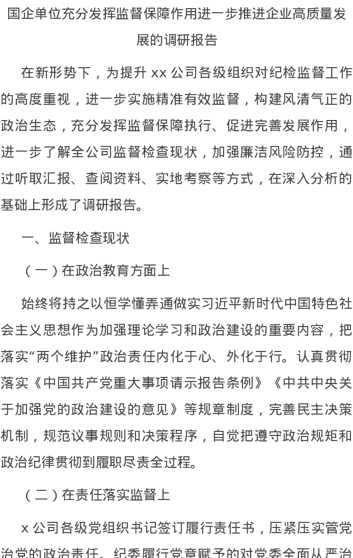 20220315国企单位充分发挥监督保障作用进一步推进企业高质量发展的调研报告