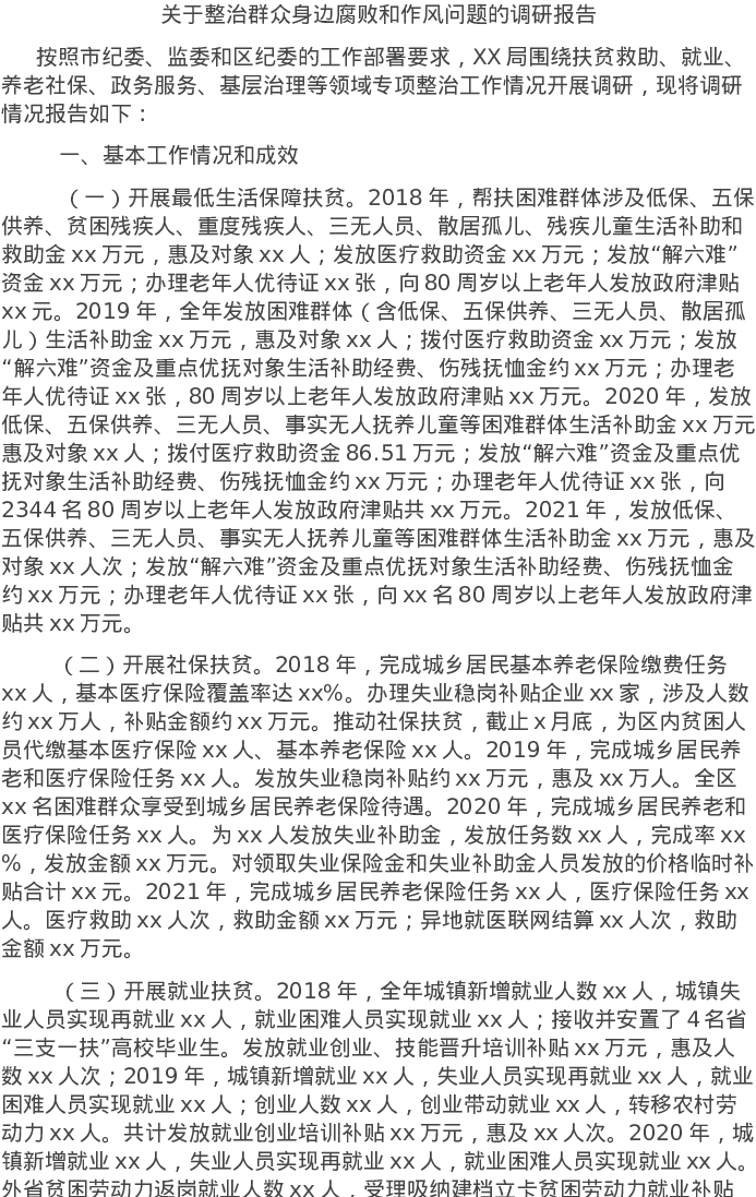 20220329关于整治群众身边腐败和作风问题的调研报告