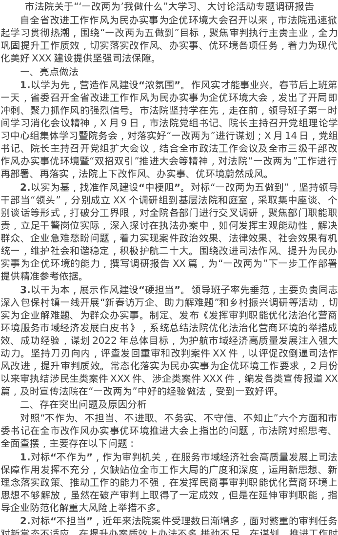 20220404市法院关于“‘一改两为’我做什么”大学习、大讨论活动专题调研报告