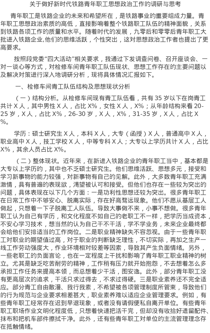 20220415关于做好新时代铁路青年职工思想政治工作的调研与思考