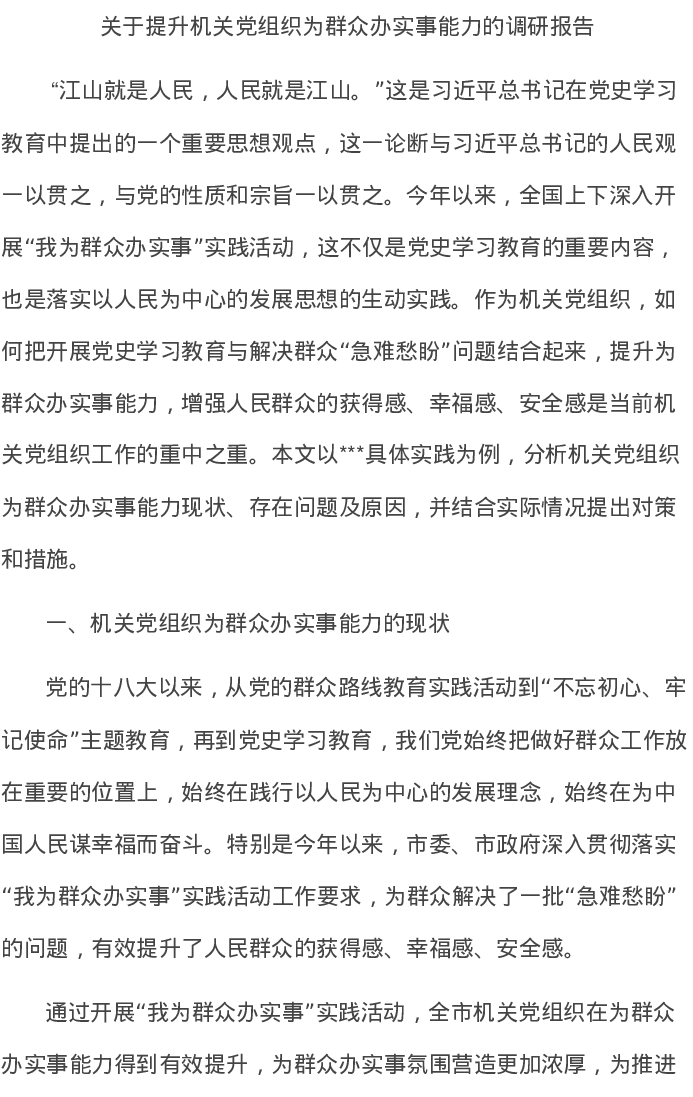 20220504关于提升机关党组织为群众办实事能力的调研报告