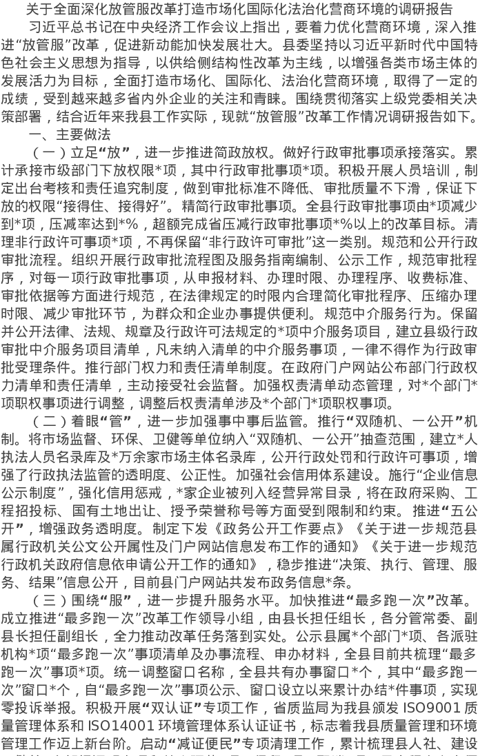 20220505关于全面深化放管服改革打造市场化国际化法治化营商环境的调研报告
