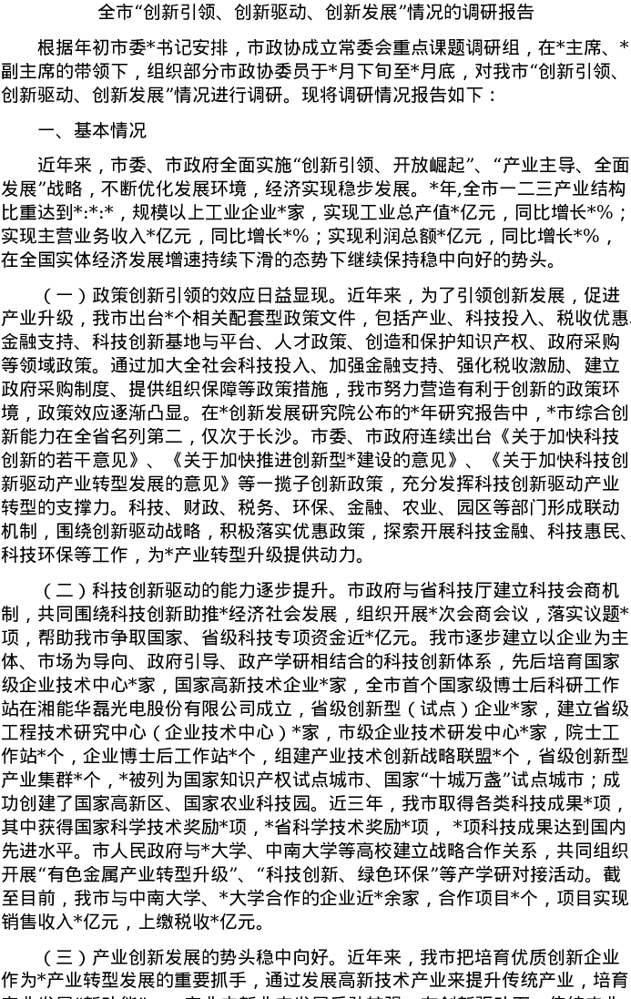 20220513全市“创新引领、创新驱动、创新发展”情况的调研报告