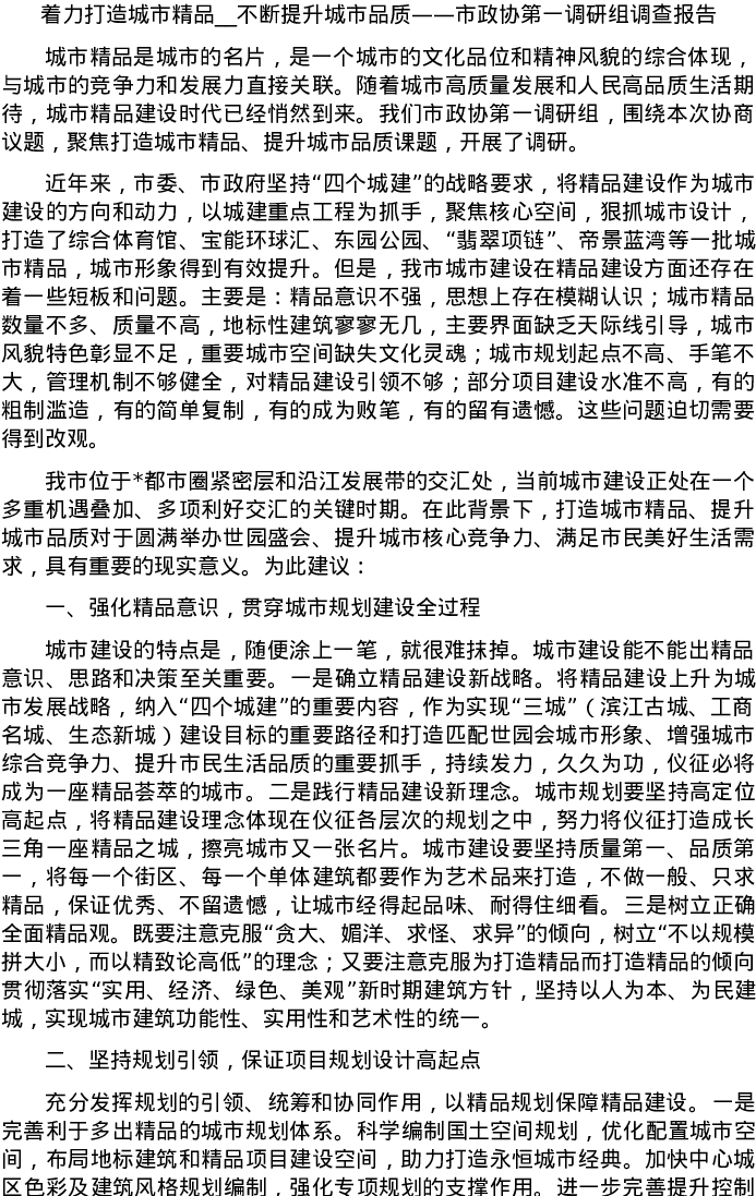 20220518着力打造城市精品__不断提升城市品质——市政协第一调研组调查报告