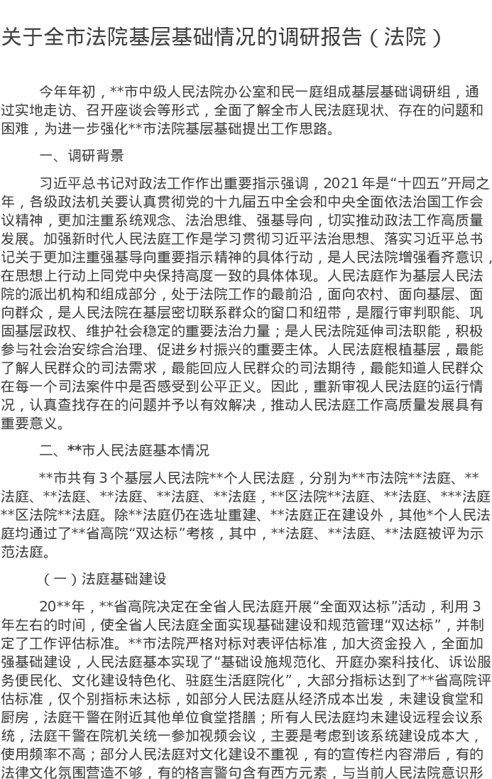 20220525关于全市法院基层基础情况的调研报告(法院)