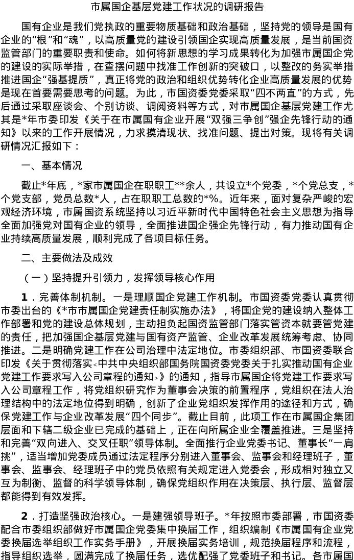 20220527市属国企基层党建工作状况的调研报告