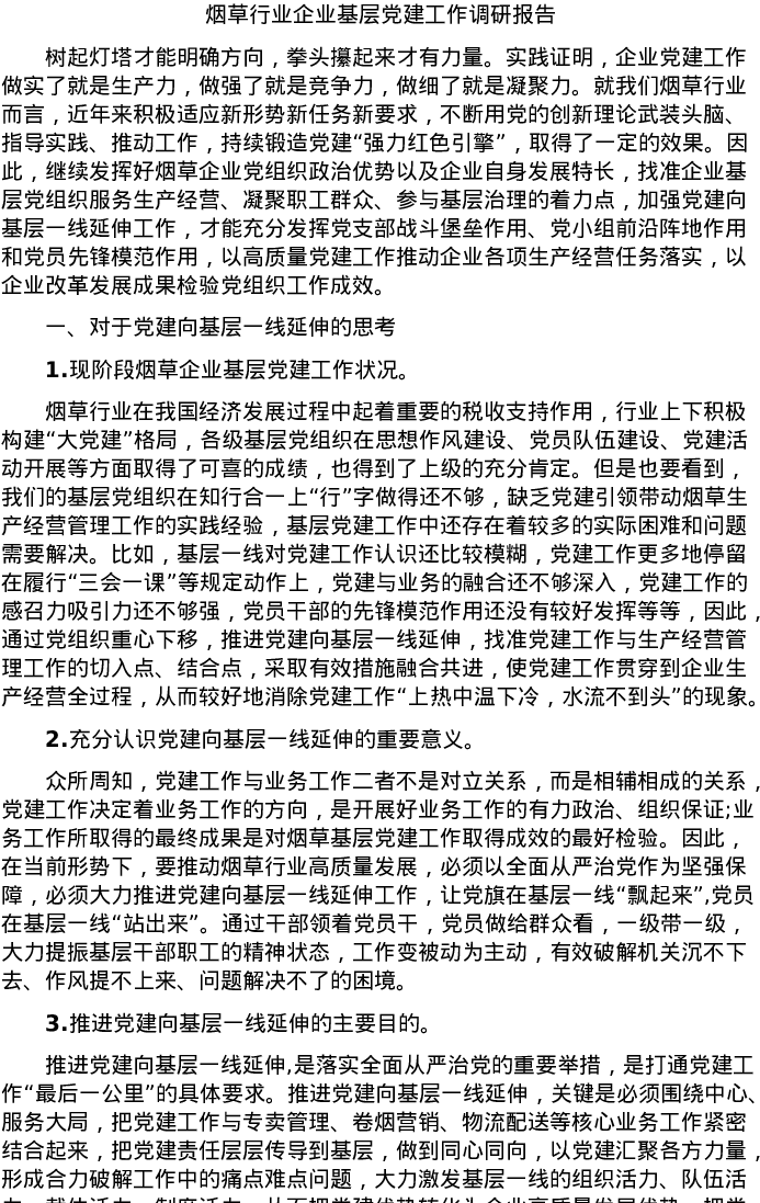20220527烟草行业企业基层党建工作调研报告