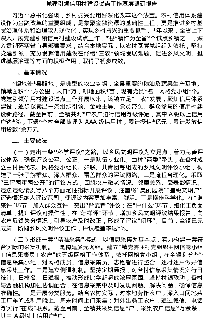 20220604党建引领信用村建设试点工作基层调研报告