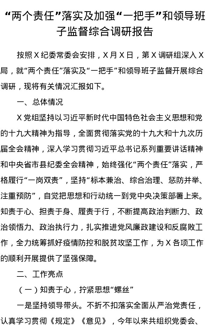 20220615“两个责任”落实及加强“一把手”和领导班子监督综合调研报告