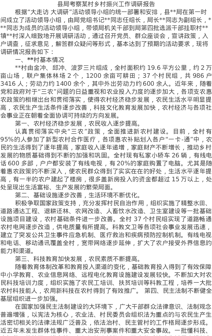 20220622县局考察某村乡村振兴工作调研报告