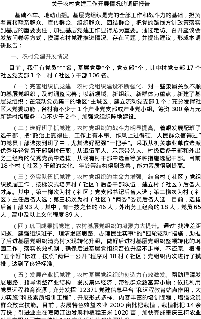 20220711关于农村党建工作开展情况的调研报告