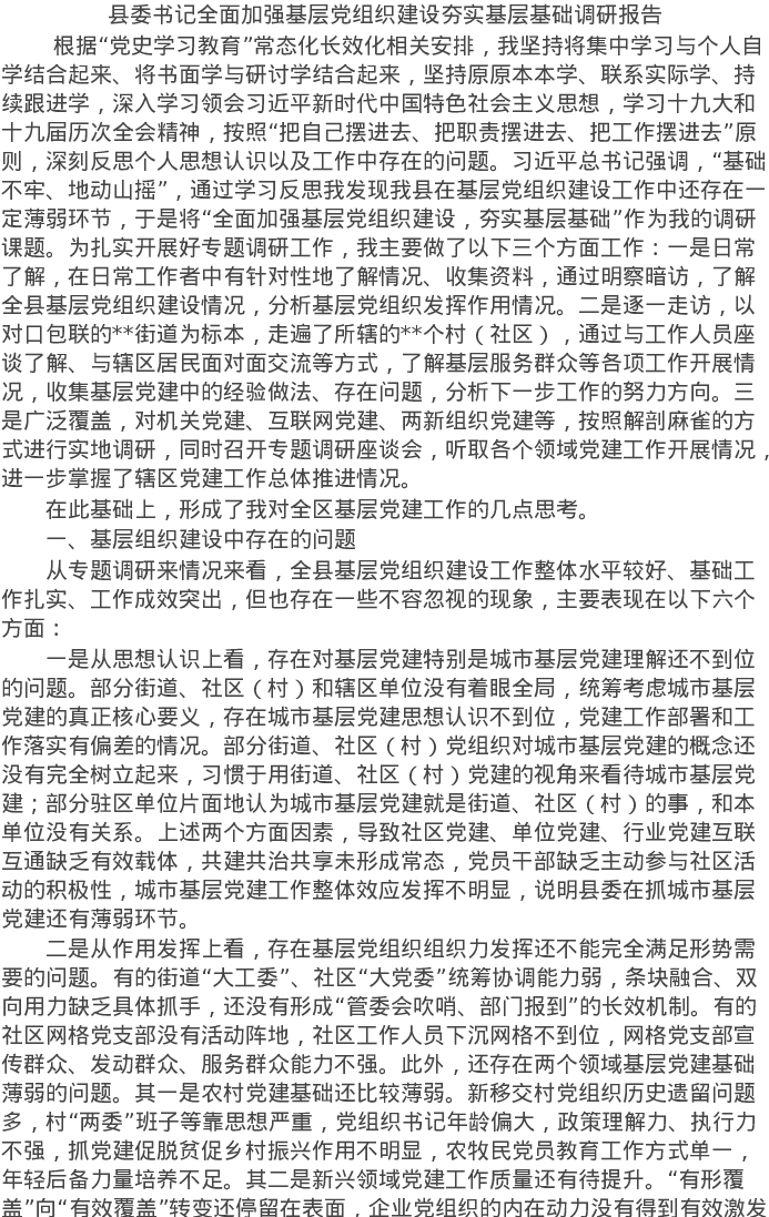 20220711县委书记全面加强基层党组织建设夯实基层基础调研报告