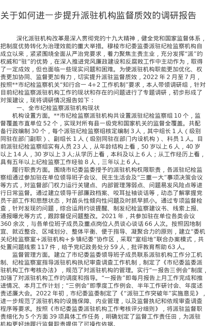 20220801关于如何进一步提升派驻机构监督质效的调研报告