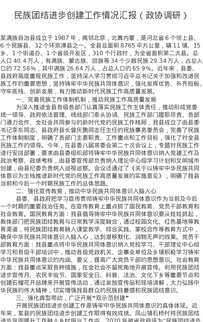 20220801民族团结进步创建工作情况汇报(政协调研)