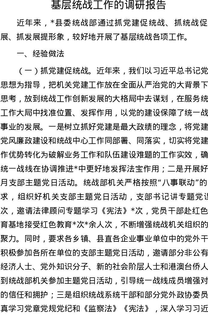 20220829基层统战工作的调研报告