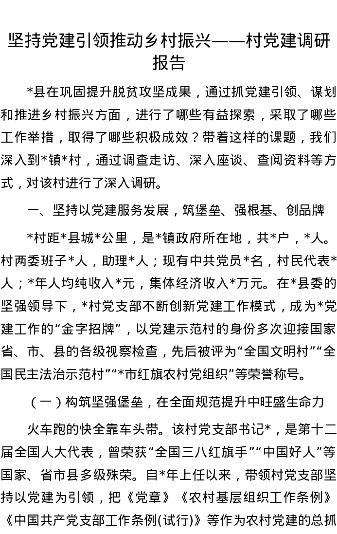 20220902坚持党建引领 推动乡村振兴——村党建调研报告