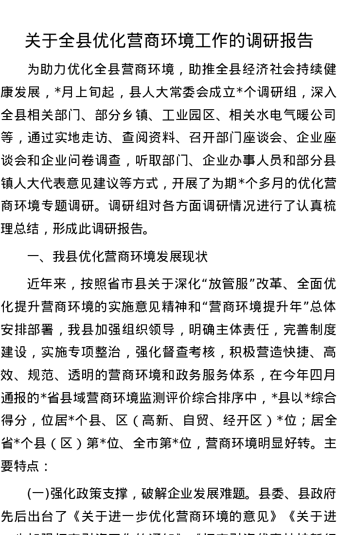 20220906关于全县优化营商环境工作的调研报告