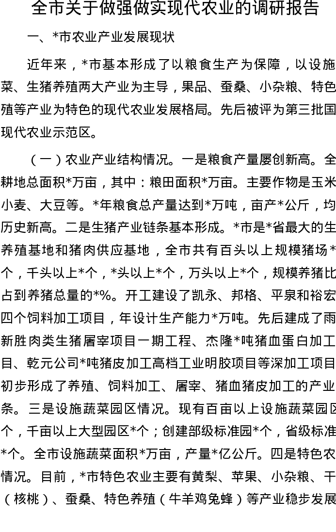 20220908全市关于做强做实现代农业的调研报告