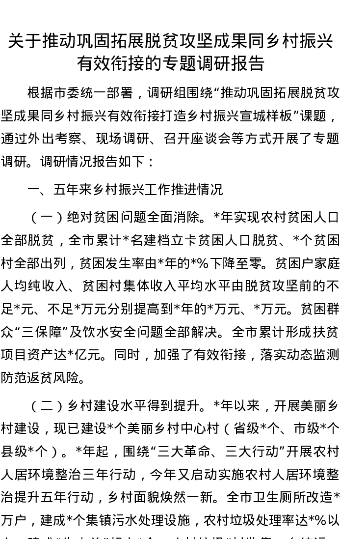20220910关于推动巩固拓展脱贫攻坚成果同乡村振兴有效衔接的专题调研报告