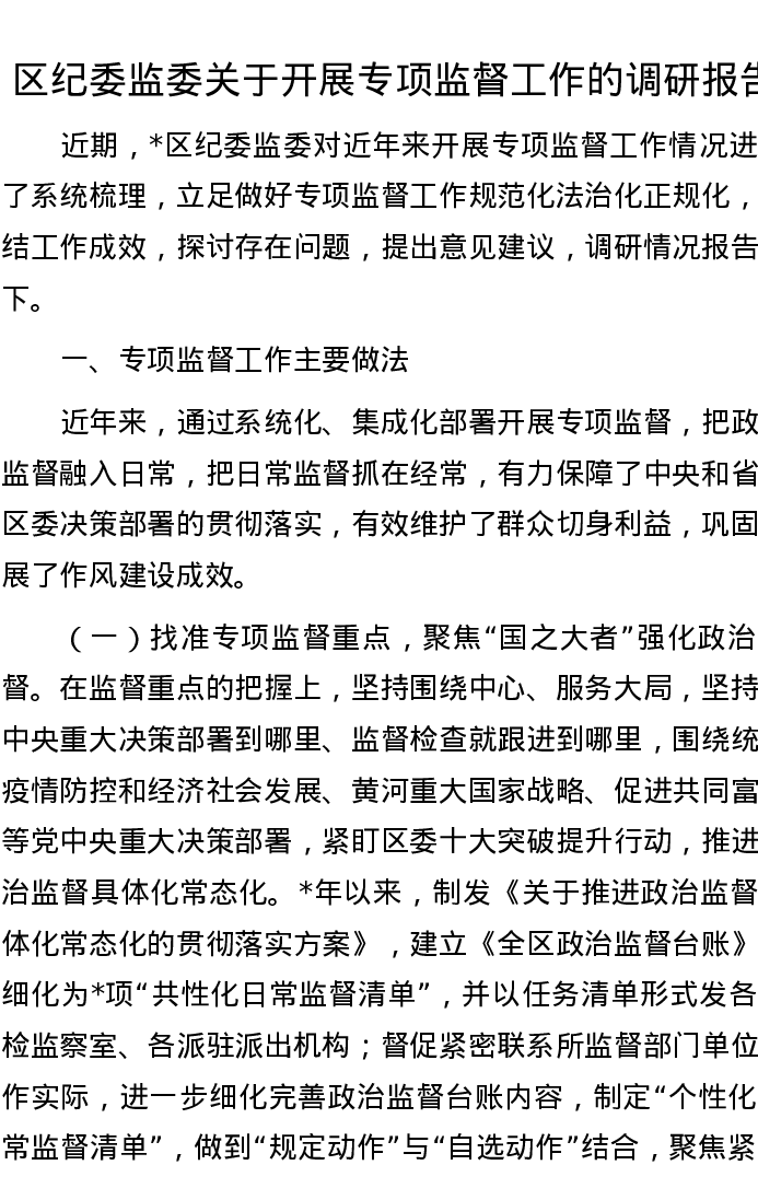 20220925区纪委监委关于开展专项监督工作的调研报告