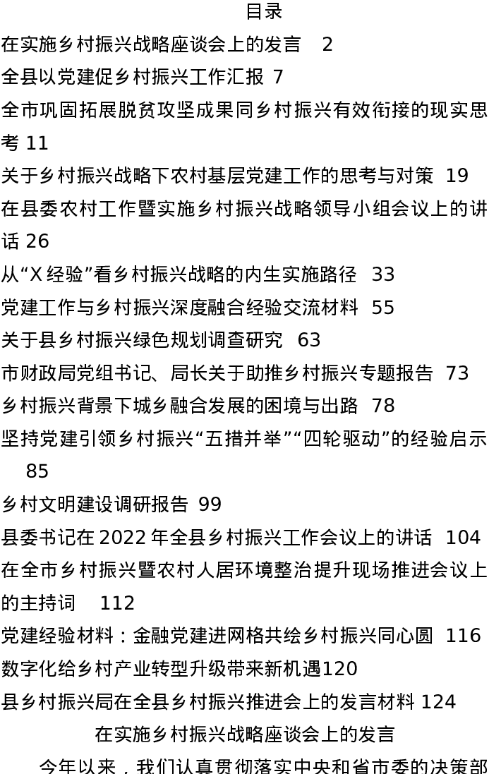 2022年乡村振兴发言、讲话、调研报告、理论文章资料汇编(17篇)