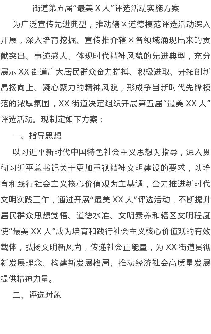 20220205街道第五届“最美X人”评选活动实施方案